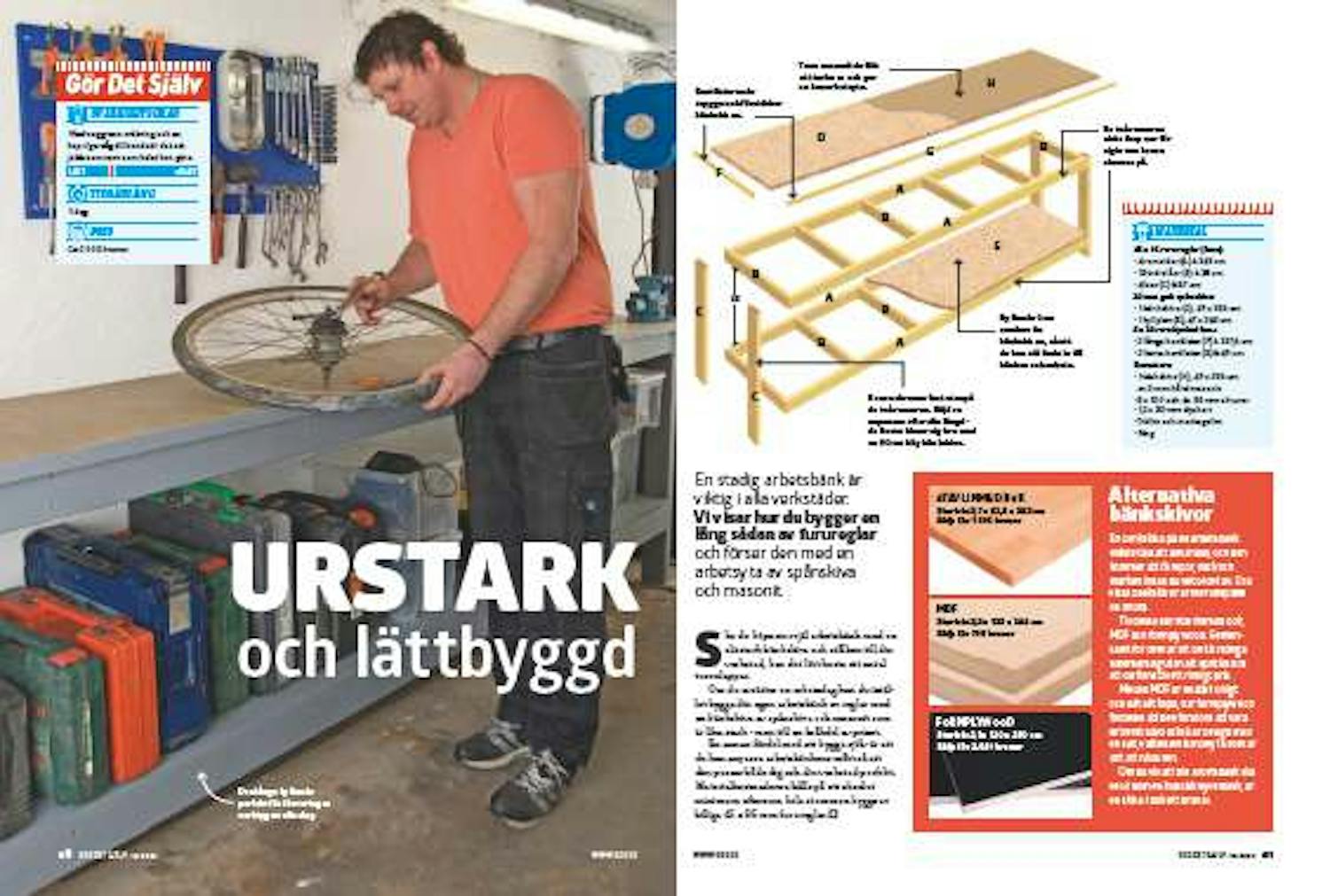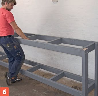 Om du gör bänken bredare eller arbetar med mycket tunga saker på bänken bör du montera fler tvärslåar och du kan också eftermontera ett par korta ben mitt på den nedre ramen.