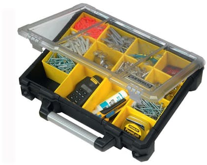 Ofärgade plastlådor gör det möjligt att se vad som finns i lådan. Då behöver du inte ta ned fyra lådor med skruvar innan du hittat lådan med elsaker.