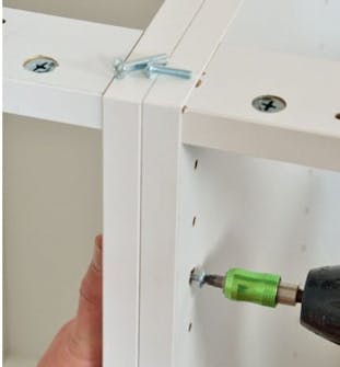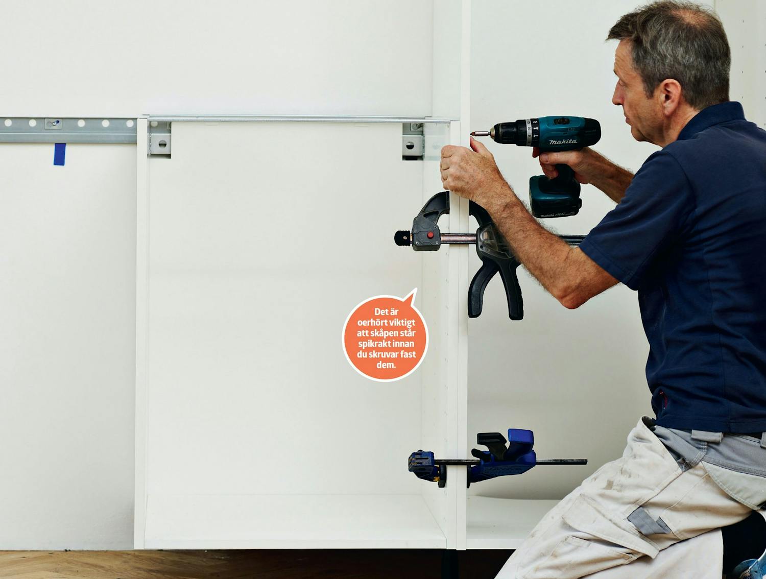 - 1. Skåpen sätts ihop så att de är vinkelräta
