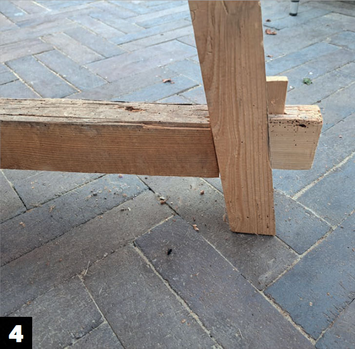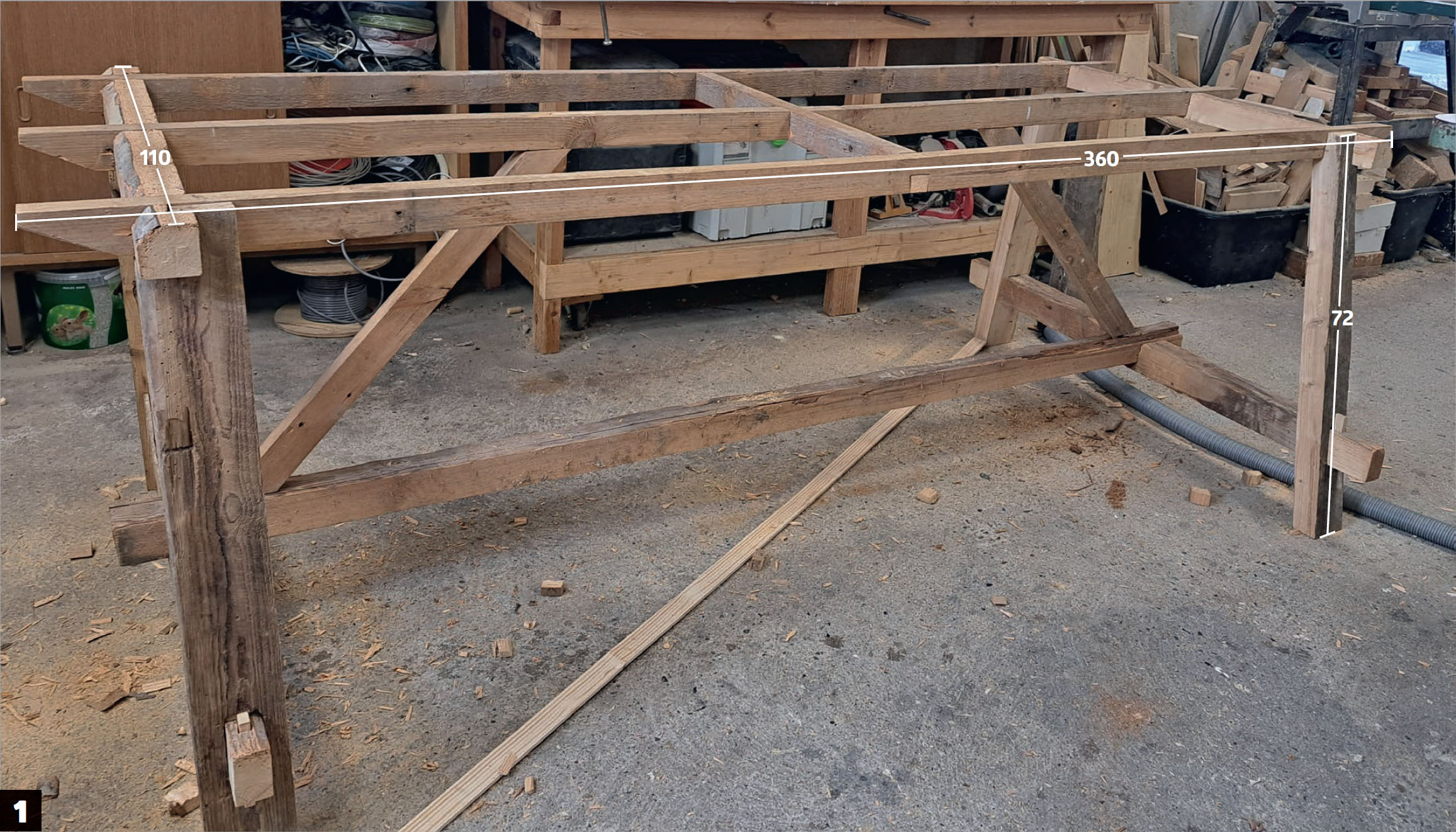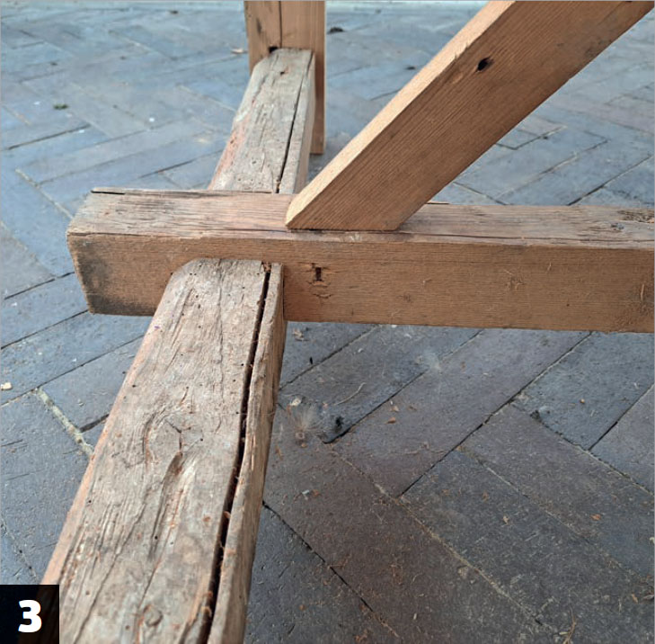 Underredet förstärks också med en kraftig snedsträva som monteras på den mittersta längsgående regeln upp till kortlingen, så att bordsskivan stöttas ordentligt. Det är viktigt när bordet är så här långt, så att det inte bågnar på mitten.