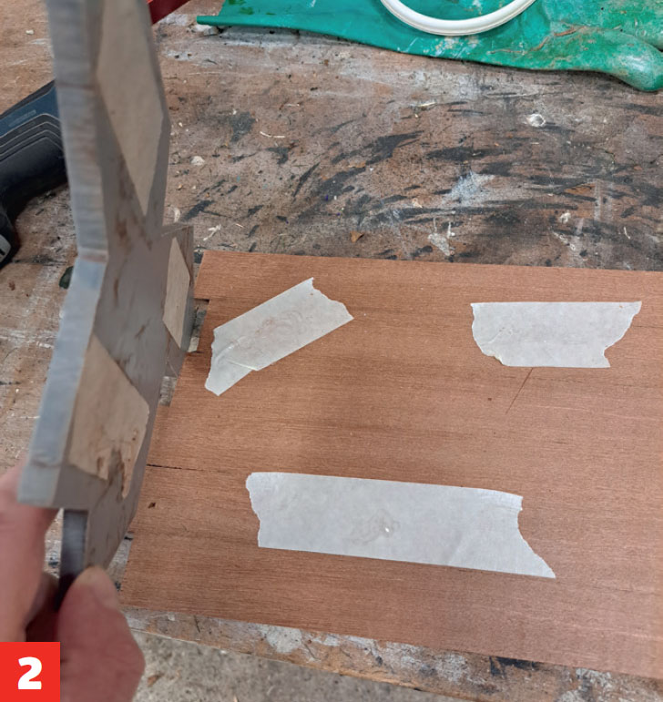 Först görs skivor som figurerna kan sågas ut från. Skivorna består av lister från gamla mahognyfönsterkarmar - med andra ord riktigt bra virke som kommer att hålla i många år framöver. Listerna limmas ihop med trälim till 7 mm tjocka skivor.