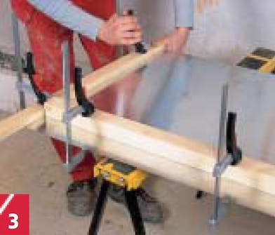 Här förlängs bänkskivan eftersom den 244 cm långa spånskivan inte riktigt räcker till.