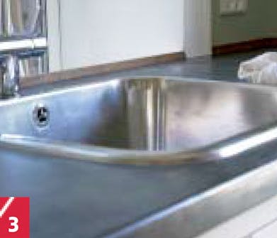Men innan disklådan (eller stålvasken) kan läggas på plats sågar man ut hål i bänkskivan och därefter tätar man kanten på spånskivan med olja, primer eller silikon. För om vatten tränger förbi kittet och fortsätter in i spånskivan så kommer denna att slå sig.