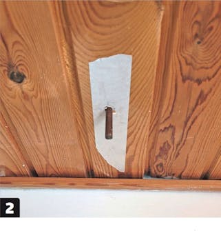 Gör ett litet hål. Mät var ventilationsröret ska gå genom bjälklaget. Borra ett 8-10 mm hål och stick in en pinne. Lokalisera pinnen ovanifrån, ta bort isoleringen runt den och ta bort eventuella dolda kablar etc.