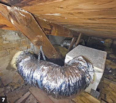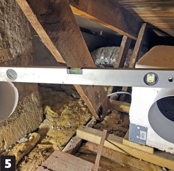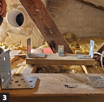 Välj en smart placering av motorn. Här gör vi en träplattform som placeras tvärs över takbjälkarna. Det är lätt att komma åt, skapar en svag lutning mot skorstenen och ligger nära både in- och utblåset.
