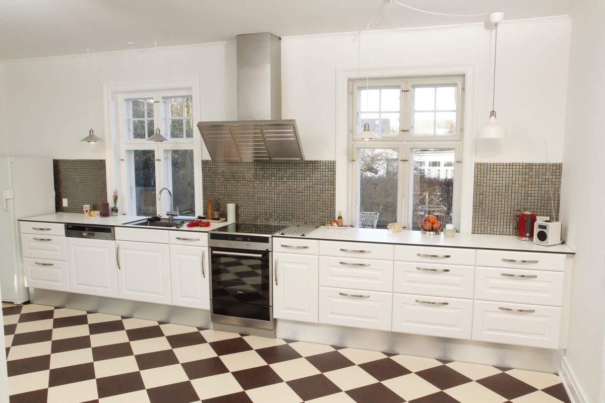 Det finns många fördelar med ett köksgolv av linoleum. Det är enkelt att lägga, och det kan läggas på det befintliga köksgolvet, oavsett om du har ett gammalt furugolv eller ett fult klinkergolv. Linoleum skapar en helt plan yta utan ojämnheter, vilket gör det lätt att rengöra. Och skulle du vara så klantig att du spiller rödvin på köksgolvet så torkas det bara bort med en våt trasa. Linoleum finns i en rad olika färger och mönster.