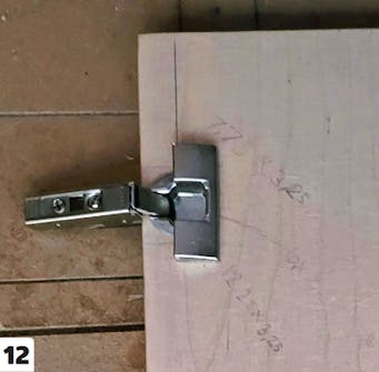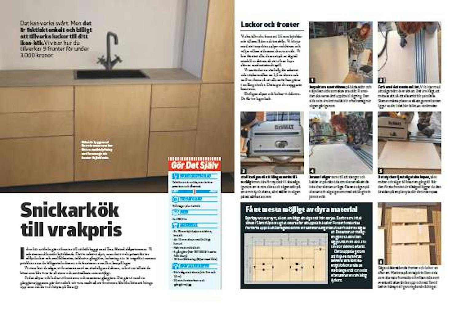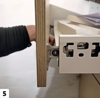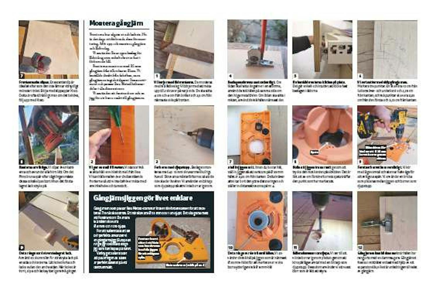 Fronterna har sågats ut och lackats. Nu är det dags att förbereda dem för montering. Mät upp och montera gångjärn och lådbeslag.
