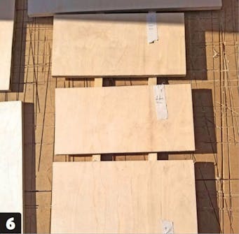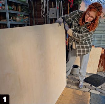 Vi ska tillverka fronter i 15 mm björkfanér till sex lådor och tre skåp. Vi börjar med att inspektera plywoodskivan och väljer vilken sida som ska vara utåt. Vi har förritat alla element på en digital modell av skivan så att vi kan kapa skivan med minimalt spill.