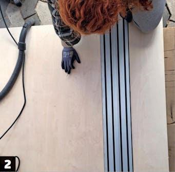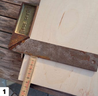 Det stycke vi just sågat ska kapas, så vi mäter och sågar till biten en gång till. När den första fronten är tillsågad lägger du den åt sidan på en plan yta där den inte repas.