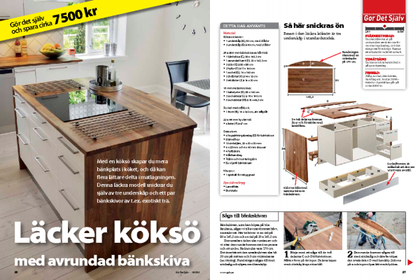 Med en köksö skapar du mera bänkplats i köket, och då kan flera lättare delta i matlagningen. Denna läckra modell snickrar du själv av tre underskåp och ett par bänkskivor av t.ex. exotiskt trä.