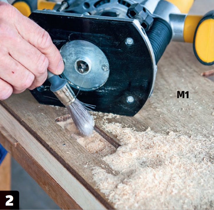 Här ska spishäll och vask sänkas ner i skivan, så vi fräser ut en kant som de kan ligga på, så att ovansidan på vask och spishäll kommer i höjd med bänkskivan.