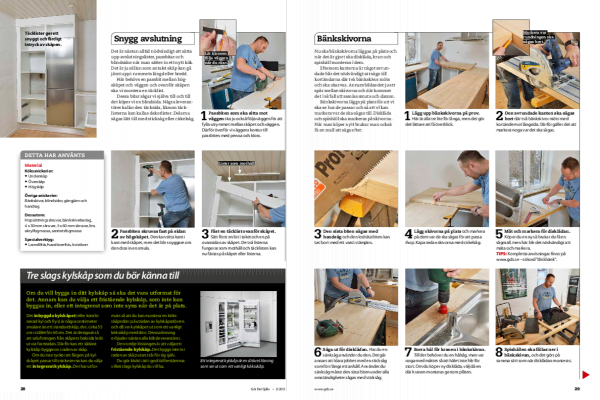 Exakt hur köksskåpen ska sättas ihop skiljer sig lite från tillverkare till tillverkare, men i princip ska du sätta ihop två sidor med en ovansida och en botten och därefter montera ett bakstycke. När det är klart sätts hyllorna på plats (eller lådorna). Svårare än så är det inte.