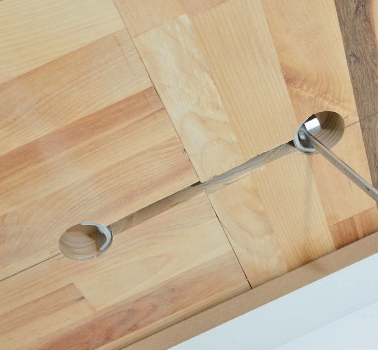När två bänkskivor ska skarvas är det viktigt att de trycks ihop så tätt som möjligt. Minsta lilla springa mellan skivorna fungerar som smutssamlare.