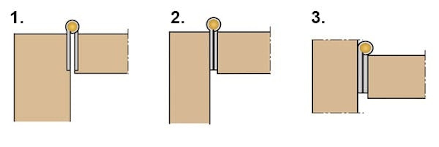 KANTGÅNGJÄRN Detta gångjärn används till samma ändamål som back-flapgångjärnet, men det är något smalare. Finns i många storlekar och med både runda och skarpa hörn. Till nättare arbeten används rostfritt stål eller mässing.