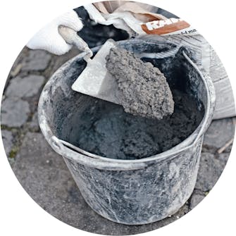 Cement (C) ger en mycket stark, mycket hård och tät puts.