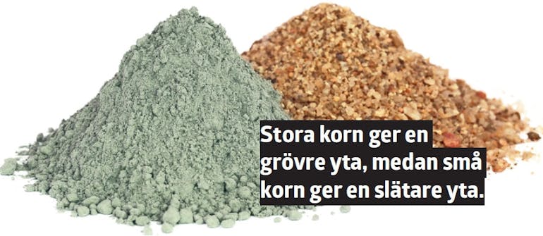 Sand ingår som fyllnadsmedel i allt bruk. Storleken på de största kornen ska passa för uppgiften: Ju tjockare skikt desto större korn. Kornstorleken anges på påsen i millimeter, t.ex. 0-4 mm.