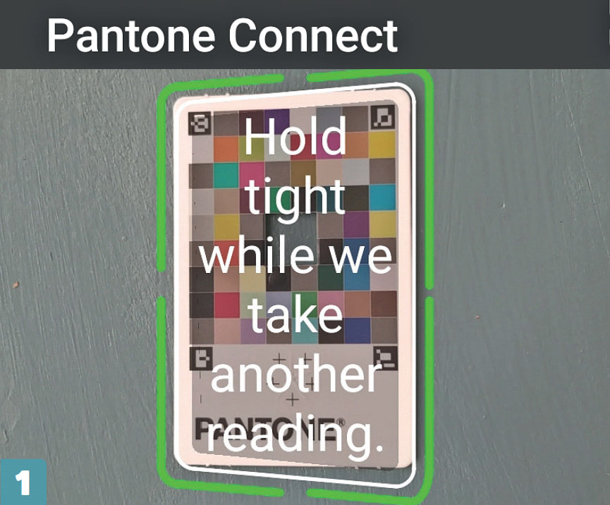 Color Match-kortet placeras ovanför den färg som du vill veta namnet på. Tryck Measure och håll kameran i rätt vinkel. Appen läser av färgen i det kvadratiska hålet mitt på kortet och kalibrerar samtidigt sig själv i förhållande till de färglagda fälten på kortet.