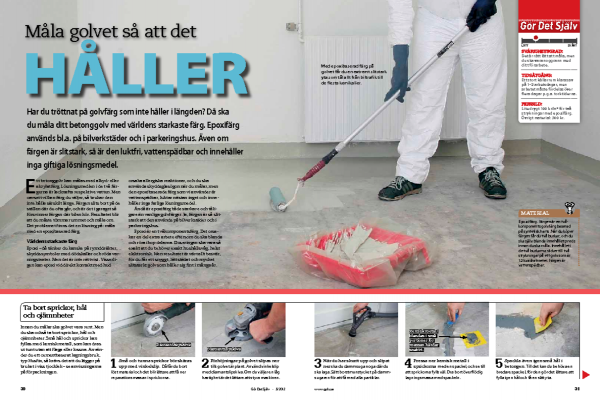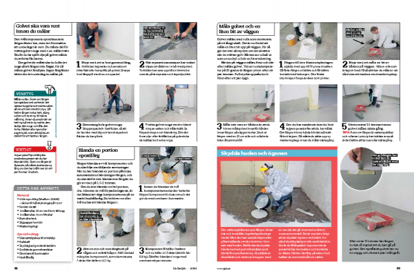 - 6 kilo epoxifärg (Sikafloor 2530W)- räcker till två strykningar på 12 m2