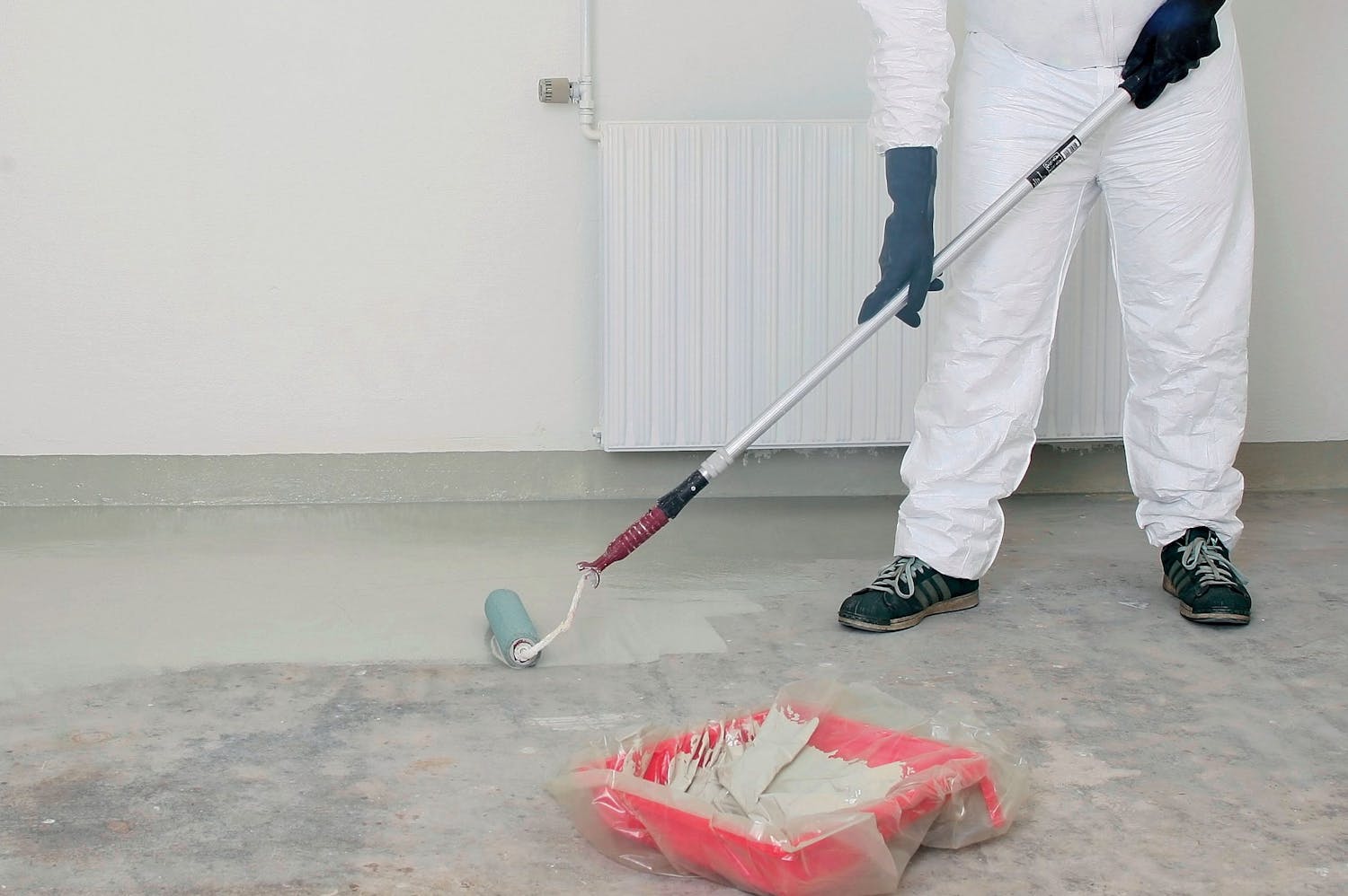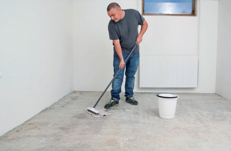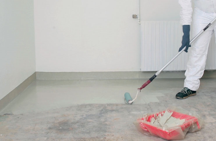 Innan du målar ska golvet vara rent. Men du ska också ta bort sprickor, hål och ojämnheter. Små hål och sprickor kan fyllas med kemisk metall, som kan dras ut tunt utan att flaga eller lossna. Använder du ett cementbaserat lagningsbruk, typ Husfix, så krävs det att du lägger på bruket i viss tjocklek - se anvisningarna på förpackningen.