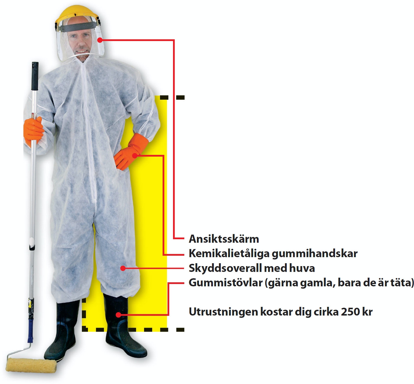 De två komponenterna blandas noga enligt anvisningarna på burkarna. Glöm inte att du ska ha skyddskläder på dig!
