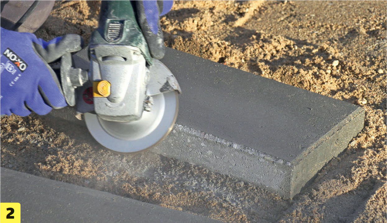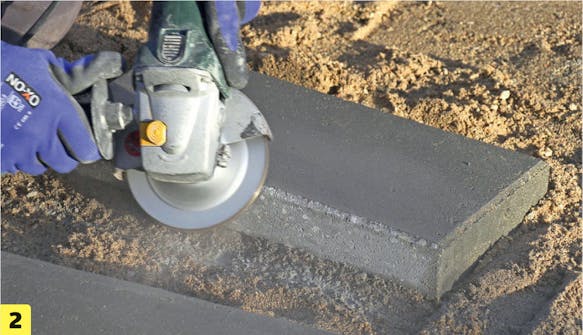 Du måste också använda en diamantkapskiva för betongplattor. Till sist slipas den vassa kanten på snittytan till med en diamantslipkopp.
