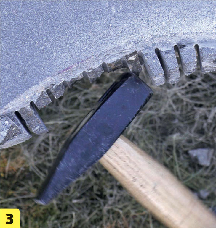 När du t ex ska kapa för stuprör eller en rabatt i trädgården, kan du behöva göra rundade snitt. De ska göras i flera moment. Vinkelslipen är nämligen bäst på raka snitt, så det handlar först om att ta bort så mycket som möjligt med de raka snitten innan du sätter igång med hammare och slipkopp.