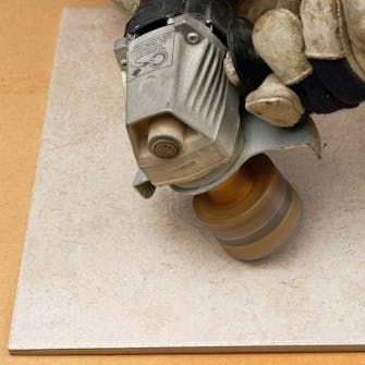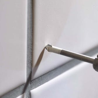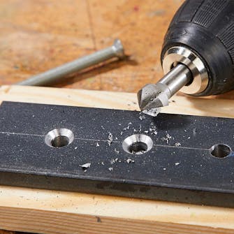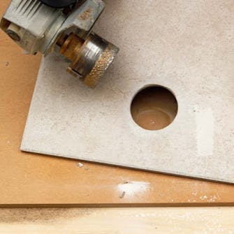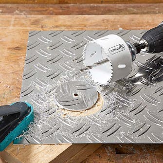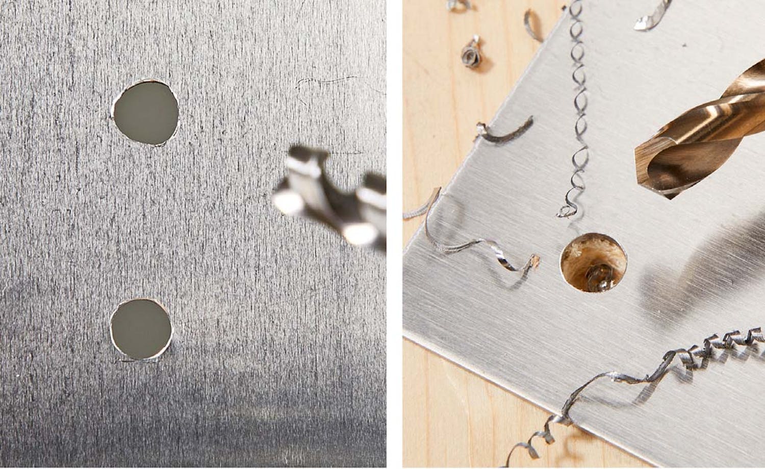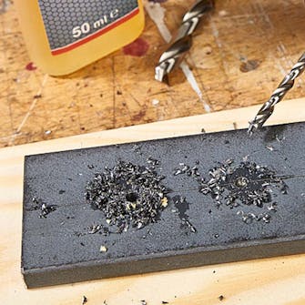 Borra hålet i ett lugnt tempo. Kom ihåg borr-/skärolja. Ska hålet vara större än 5 mm bör du förborra med ett mindre borr på omkring 3-4 mm.