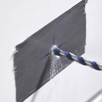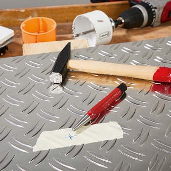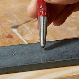 Markera var hålets centrum ska vara. Det kan göras genom att slå ett litet märke med en körnare eller genom att markera på en bit maskeringstejp. Båda metoderna gör så att borret inte glider.