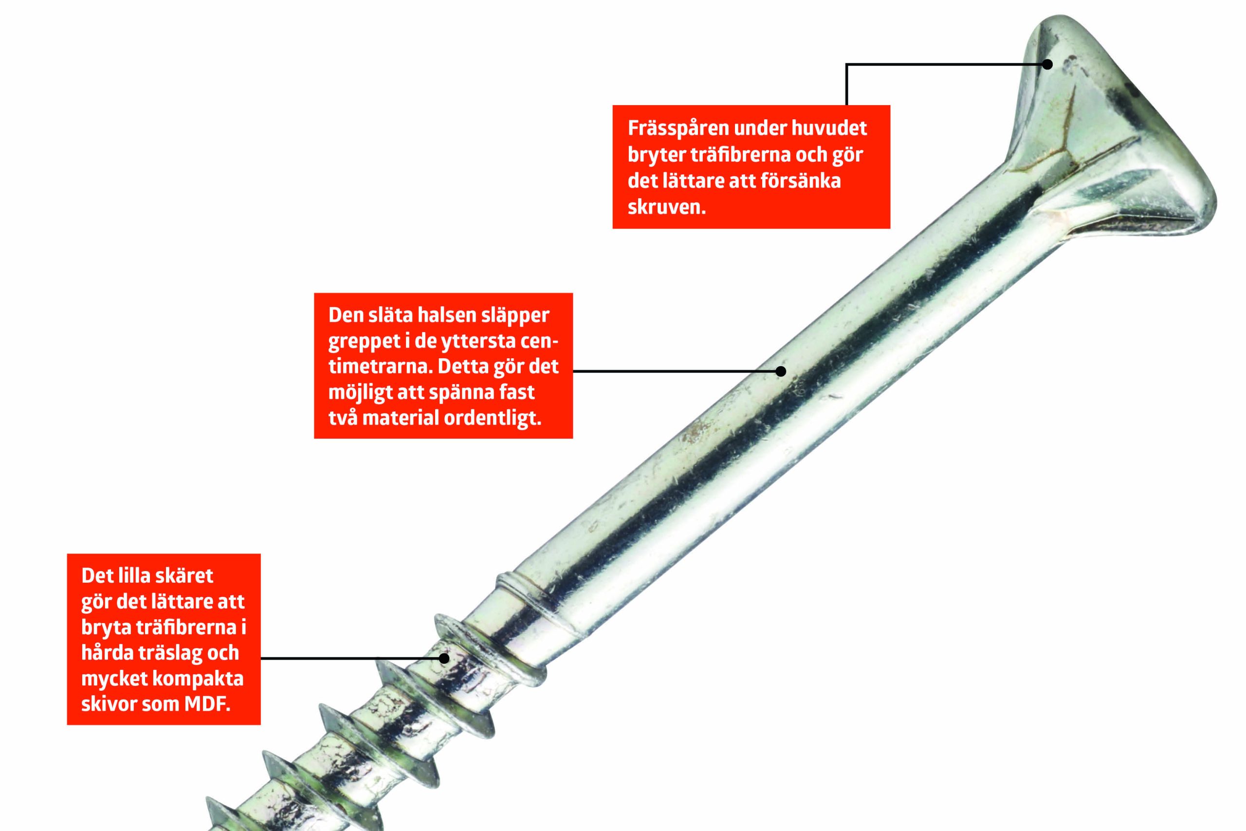 Skruven är genialisk och den i särklass mest mångsidiga skruven i sortimentet. Det är därför vi alltid har den i lager i tre storlekar. Med dem kan vi hantera cirka 90% av alla skruvjobb som vi stöter på i och runt hemmet.