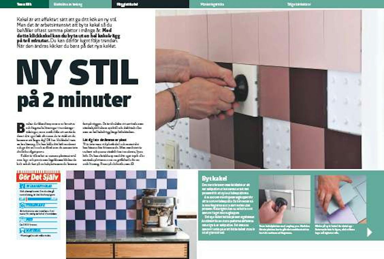 Klicka på kakelplattor. Gör detta nu, innan du monterar bakplattan. Det gör det lättare att få önskat avstånd till bänkskivan och att montera avslutningslister när bakplattan ska monteras.