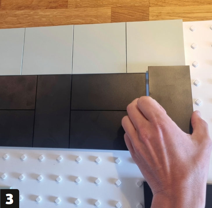 Släpp loss kreativiteten med dina personliga lösningar. Vad sägs om ett stort porträtt av barnen över många plattor som sätts ihop som ett pussel? Eller ett släktträd där varje person har sin egen platta? Förhållandet mellan höjd och bredd för de två kakelstorlekarna är 2 till 3 och 4 till 3, så du kan enkelt kombinera de två storlekarna i en design.
