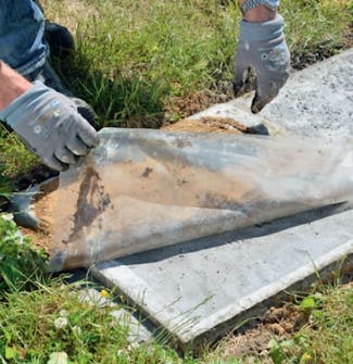 Klipp en bit kraftig plast, t.ex. ångspärrsfolie, och lägg den på betongen. Släta ut den med handen så att luftbubblor försvinner.