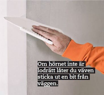 Sätt upp den andra våden. Den högra kanten på våden ska sticka ut några centimeter från hörnet. Pressa ner väven i limmet men rör inte själva hörnet.