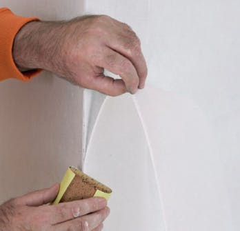 Lägg vävlim på den andra sidan av hörnet. Lägg inte på mer lim än för en våd i sänder eftersom limmet torkar snabbt i ett uppvärmt rum.