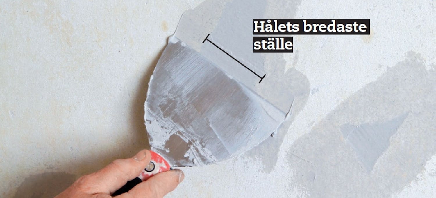 Hål, jack och märken i väggen spacklas lättast med sandspackelmassa. Dammsug alla hål och fyll sedan i rikligt med spackelmassa. Med en spackel, som ska vara bredare än hålet, drar du av överf ödig spackelmassa.