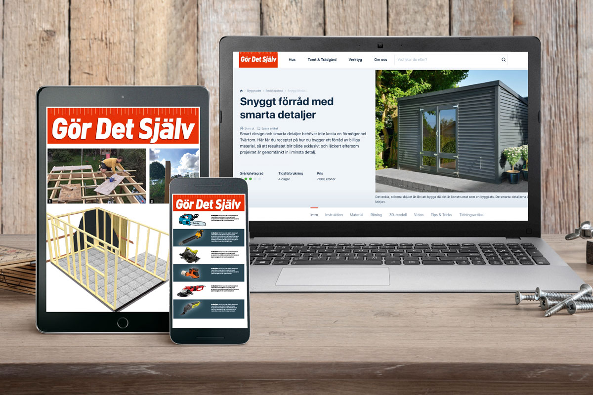 Med en digital prenumeration hos Gör Det Själv har du fri tillgång till mer än 1000 gör-det-själv-beskrivningar, fler än 60 stora verktygstest plus mycket mer.