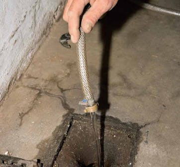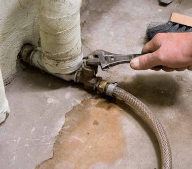 Avtappning av vatten. Slå av strömmen innan du tappar ur vattnet. Här är hela installationen placerad i pannrummet, och avtappningskranen sitter ända nere vid golvet. Koppla till en slang så att vattnet kan ledas till avloppet.
