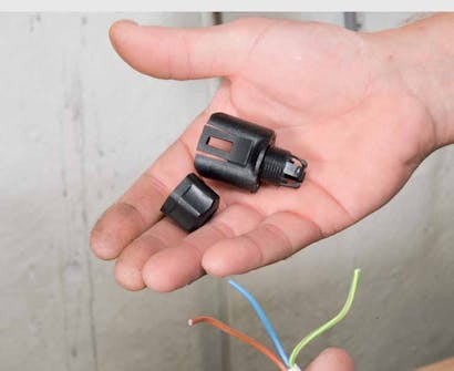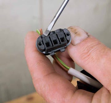 Montera ihop stickproppen när alla tre ledningarna är fastskruvade. I den andra änden av sladden monterar du en jordad stickpropp.