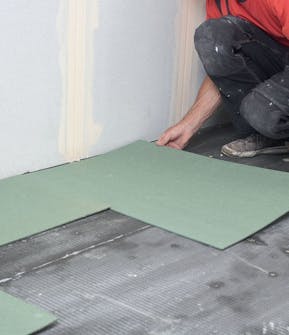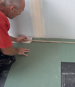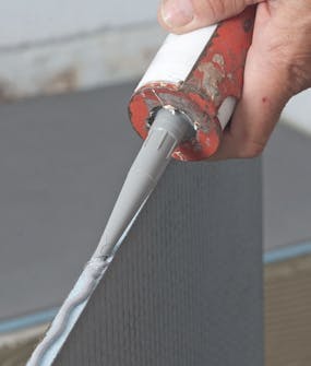 När fästmassa och kantlim fått härda ett dygn kan arbetet fortsätta, för det är först nu som du kan gå på byggskivorna.