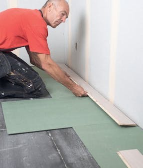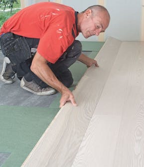 De ljuddämpande skivorna läggs i takt med att du lägger parketten.