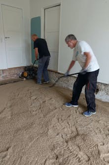 Först ska hela golvet tas bort, och då är regeln enkel men krävande: Allt organiskt material måste tas bort. Det vill säga alla golvbjälkar, reglar, eventuell isolering etc. Det är nu som ditt hem förvandlas till en byggarbetsplats med ett golv av packad jord.