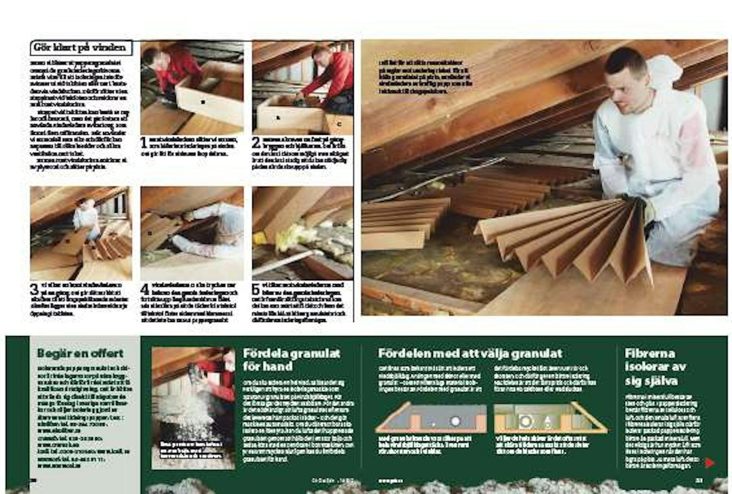 Till skillnad från mineralull tål pappersgranulat att du någon enstaka gång går på isoleringen. Du ska bara kratta till den efteråt så den lgger sig slätt.