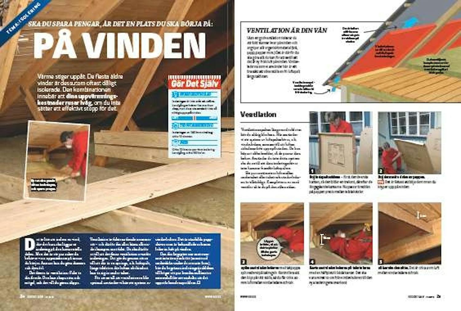 Ventilationsspalten längs med takfoten bör du aldrig blockera. Här använder vi ett system av luftspaltsskivor, s.k. vindavledare, som ser till att luften cirkulerar fritt uppe på vinden. De kan köpas i olika bredder, så de passar dina behov. Använder du inte detta system ska du se till att dina isoleringsskivor inte hamnar framför luftspalten.