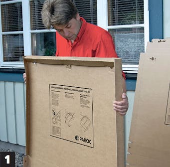 Böj luftspaltsskivan - först den översta kanten, så den bildar en trekant, därefter de längsgående kanterna. Nu passar bredden på pappen precis mellan två takstolar.