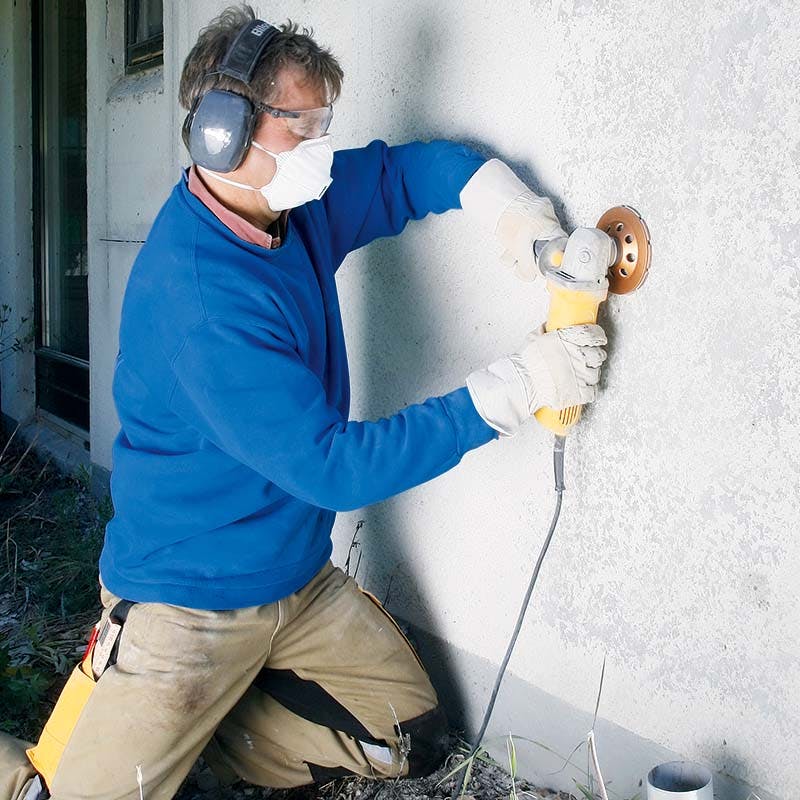 VIKTIGT! Det dammar enormt så du ska använda andningsmask och skyddsglasögon.