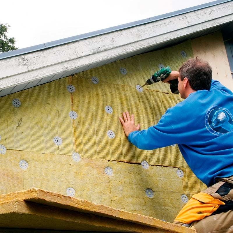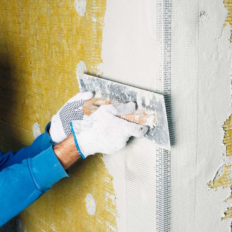 När isoleringen har satts på plats väntar nästa uppgift: Isoleringen ska täckas med 8-10 mm armerad puts.