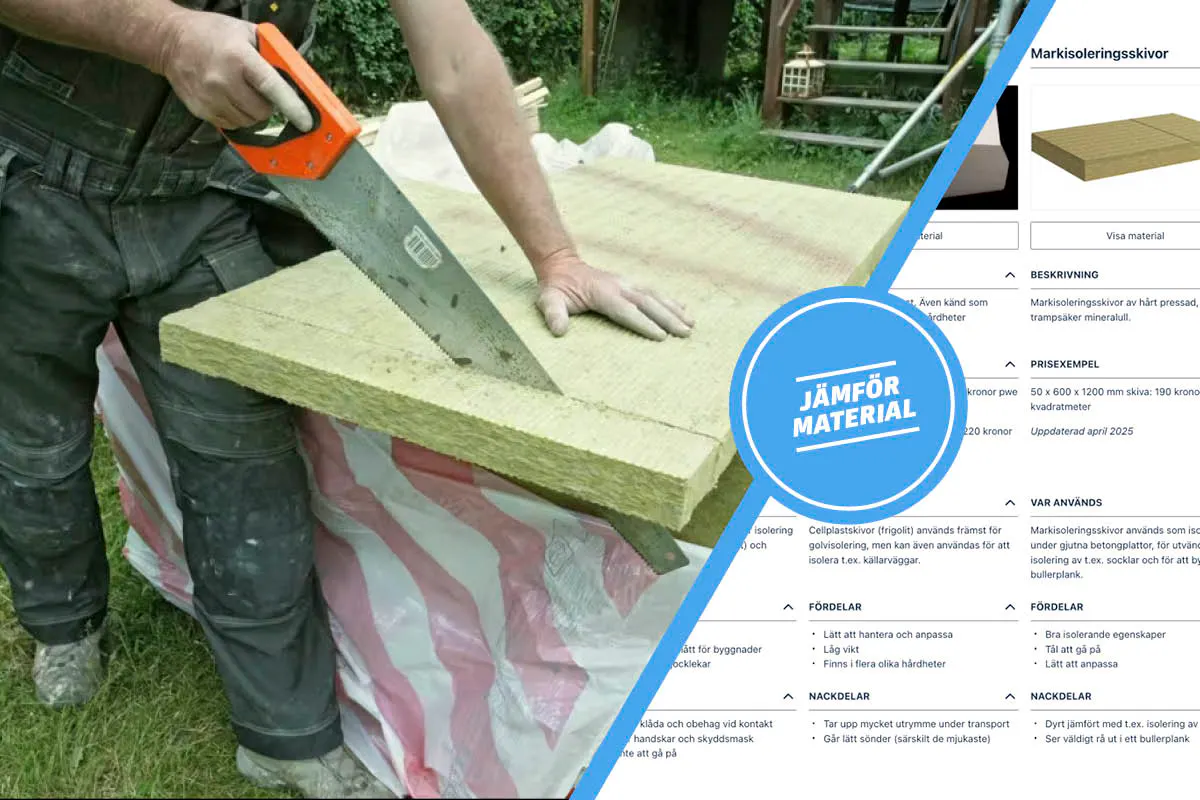 Du känner säkert till mineralull, men du bör också känna till andra material som cellplast, isolergipsskivor och pappersull om du vill göra ett välgrundat val. Och om du isolerar en källarvägg från insidan eller utsidan bör du också känna till markskivor och mineralisolerplattor.