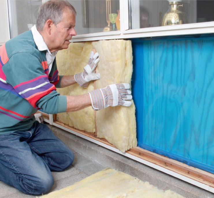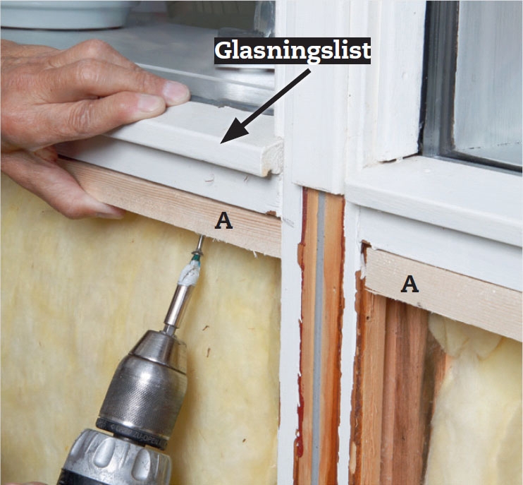 Fyll på med mer isolering i fälten. Du bestämmer själv hur tjock isoleringen ska vara. Ju tjockare isolering, desto tjockare blir påbyggnaden (dvs. bröstningen) under fönstren. Isoleringen ska fylla ut utrymmet fullständigt.