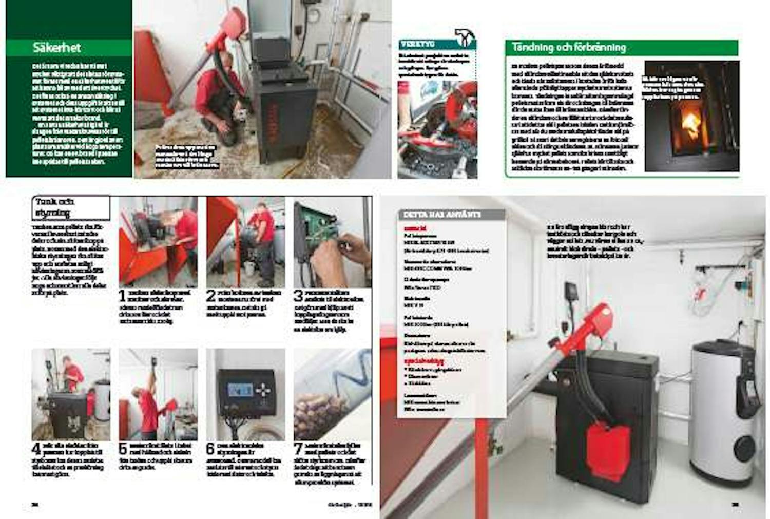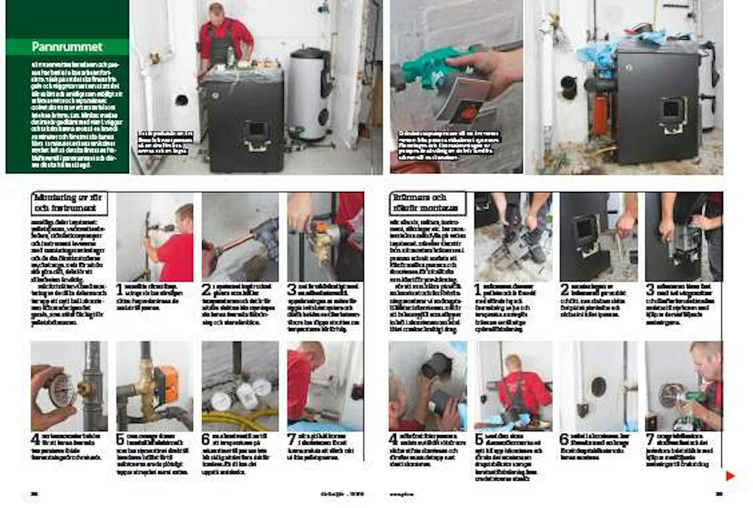 Samtliga delar i systemet: pelletspanna, varmvattenberedare, cirkulationspumpar och instrument levereras med monteringsanvisningar och de ska förstås studeras mycket noga. Dels för att du ska göra rätt, dels för att säkerheten är viktig.