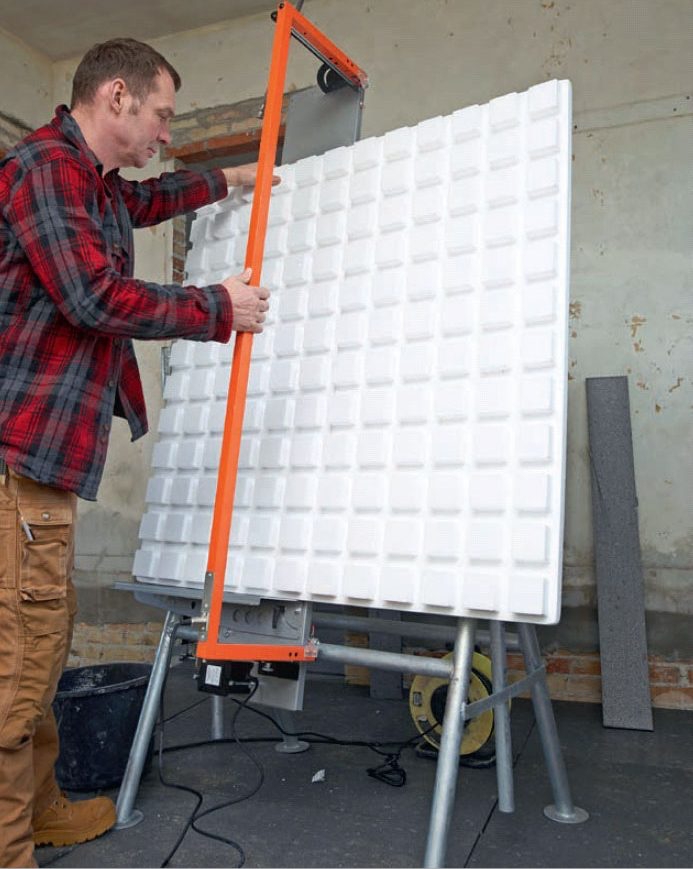 Lägg ut en avlastningsskiva för att skona värmeslingorna. Ett stycke kryssfaner eller liknande är bra att använda för detta ändamål.